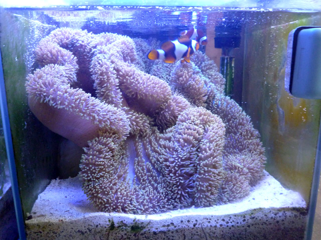 | 2013/3/24 ハタゴイソギンチャク 30cmキューブじゃ小さすぎですが そのまま^^; 狭いですが飼育可能ですw |