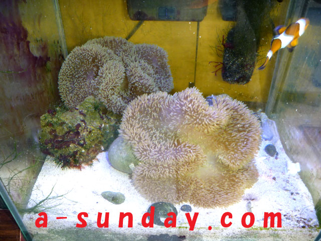 2013/3/24 ハタゴイソギンチャク (60cm水槽の右半分が イソギンチャクで埋まっています。) |